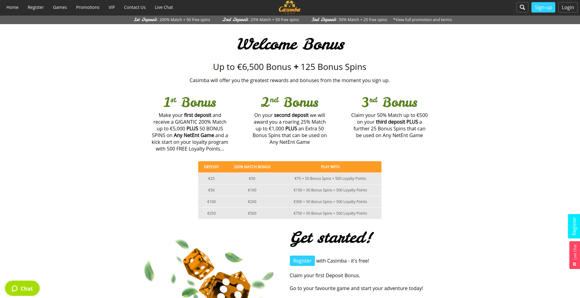 Each Casimba bonus (€5000+ 50 FS) is a thing to treat gamblers and here comes the description of these pleasant deals. The first 3 deposits are followed by these offers.