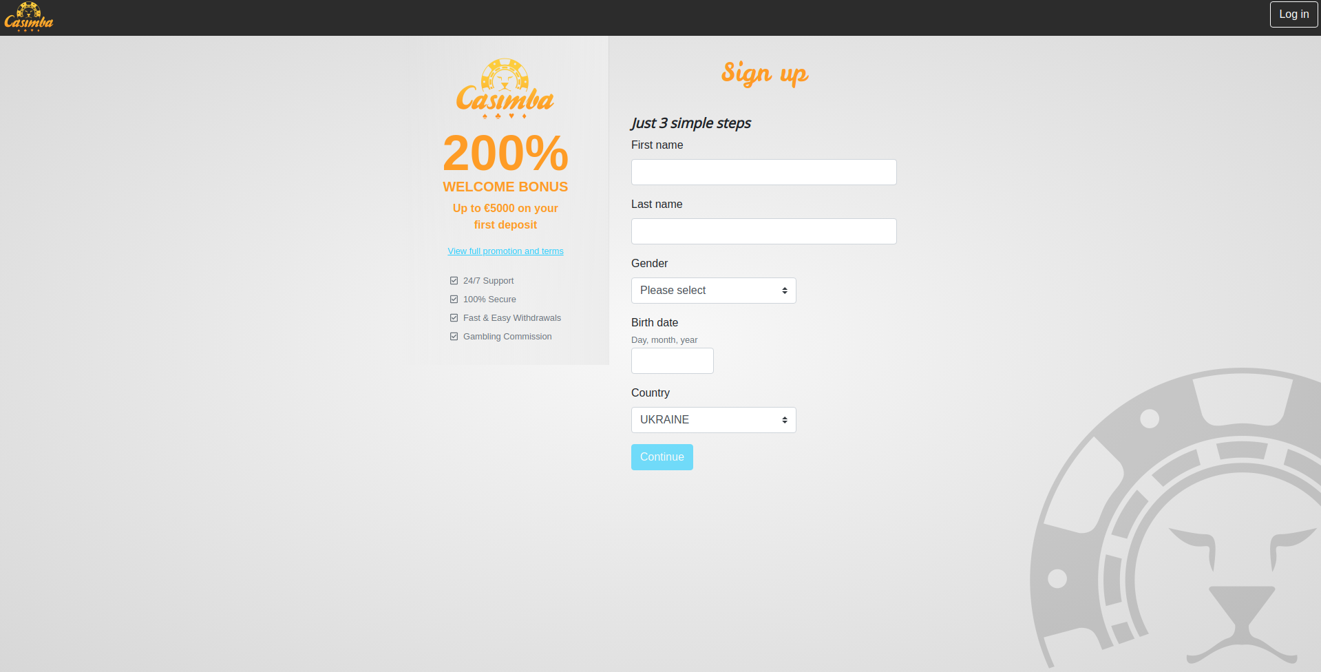 Playing for fun (demo) doesn’t require registration (if it’s not Live mode), while all the other options of the casino do. So Casimba login is what you need when starting to play more seriously. What are the steps to do that?