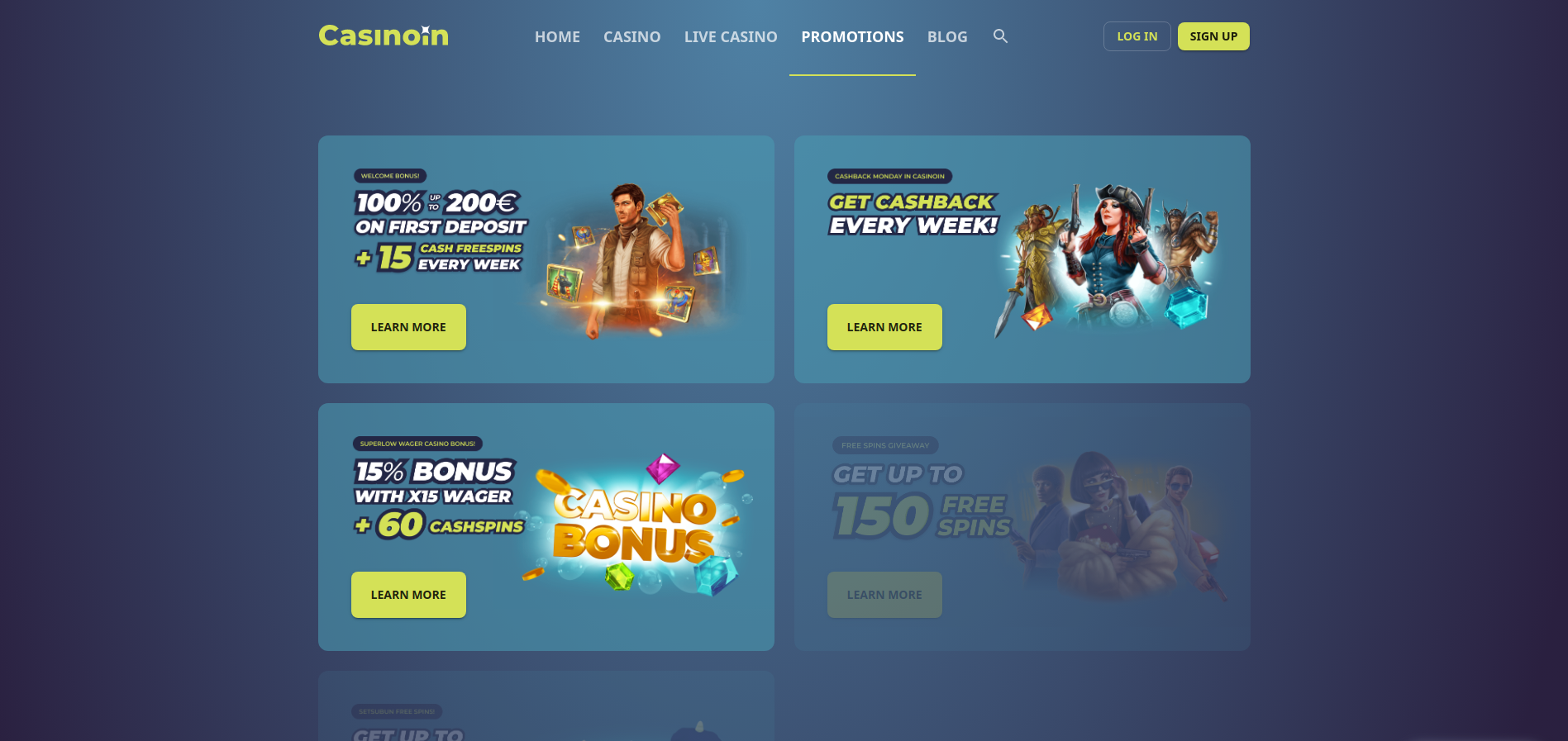 Want to have a strong basis before getting to play? Casinoin bonuses can give you this opportunity. That’s why a greeting deal is so perfectly supplemented by regular presents of the site. So, what’s the first gift users get here? It is € 200 + 60FS.
