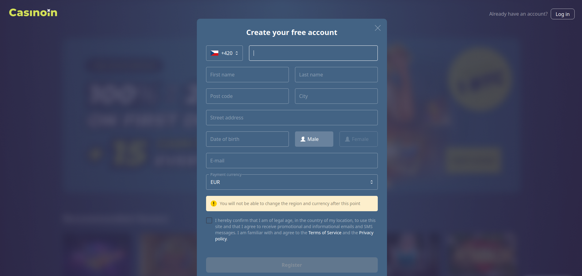 Casinoin Casino: Registration