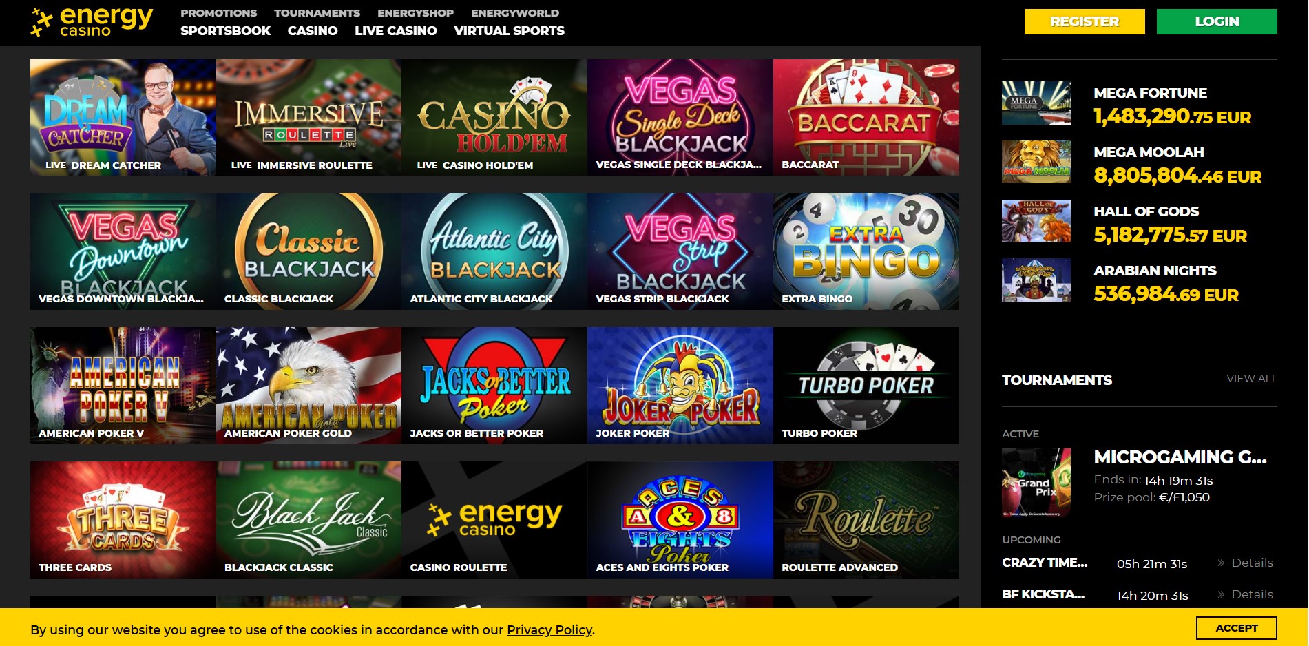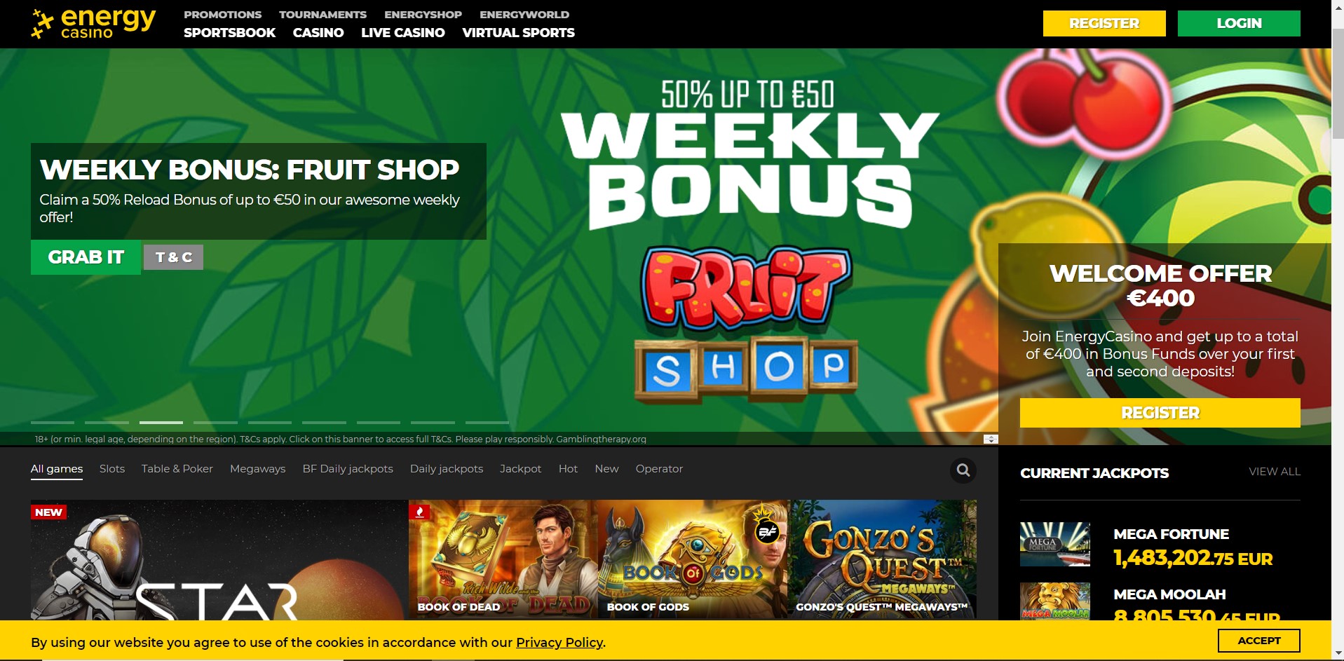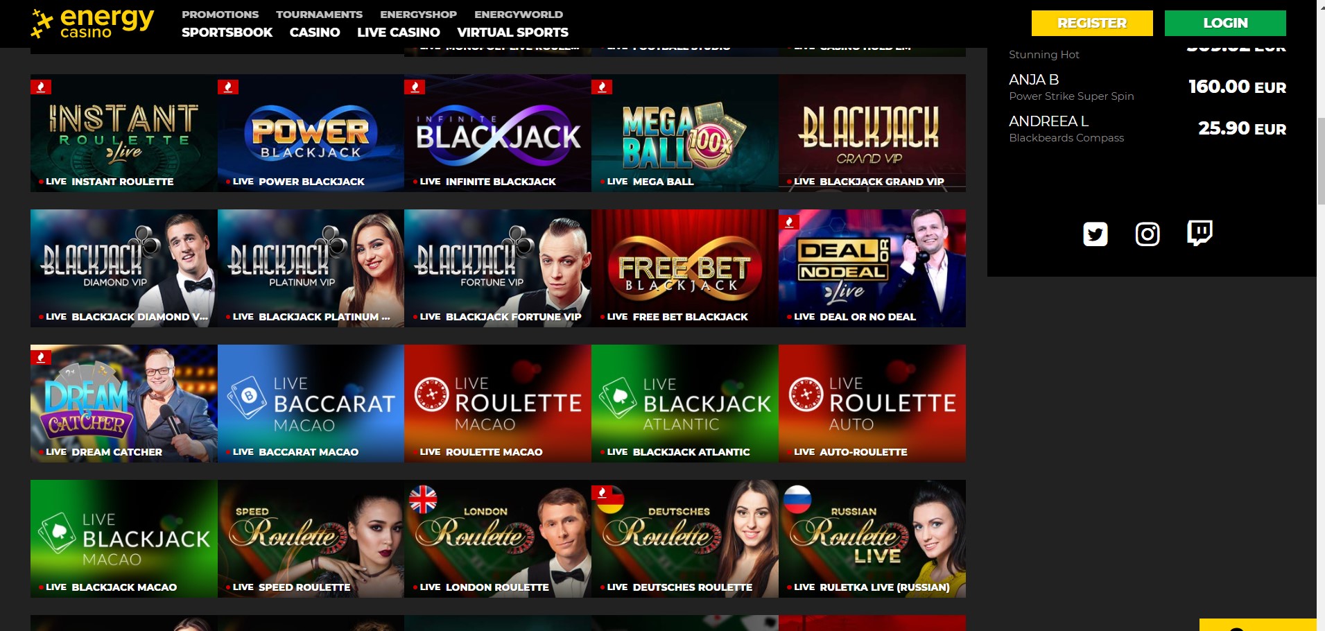 Energy have a great reputation for online gaming and casino play amongst users and the site is easy to navigate and easy on the eye making it a great experience whenever you play online.