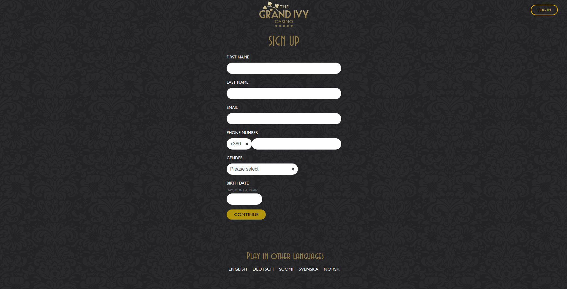 The casino can be translated into different languages as follows: English, German (Deutsch), Finnish (Suomi), Swedish (Svenska), Norwegian (Norsk).