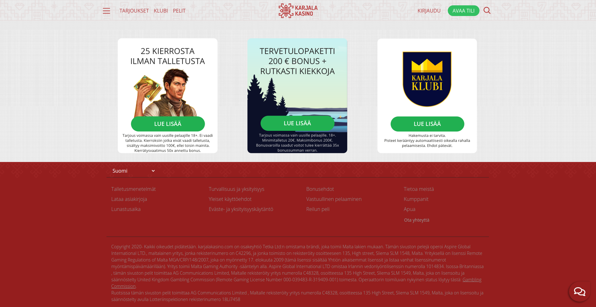 Karjala Kasino is proud to introduce three bonus options, and here is what you are offered: