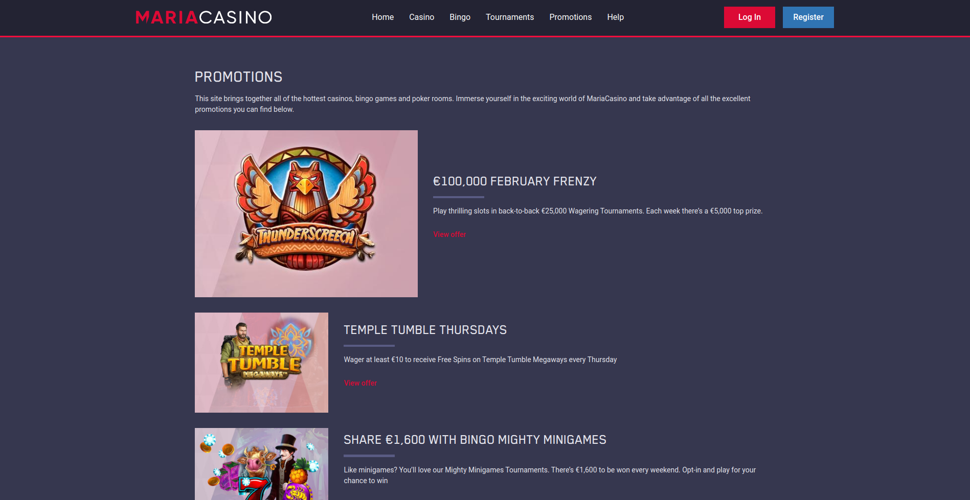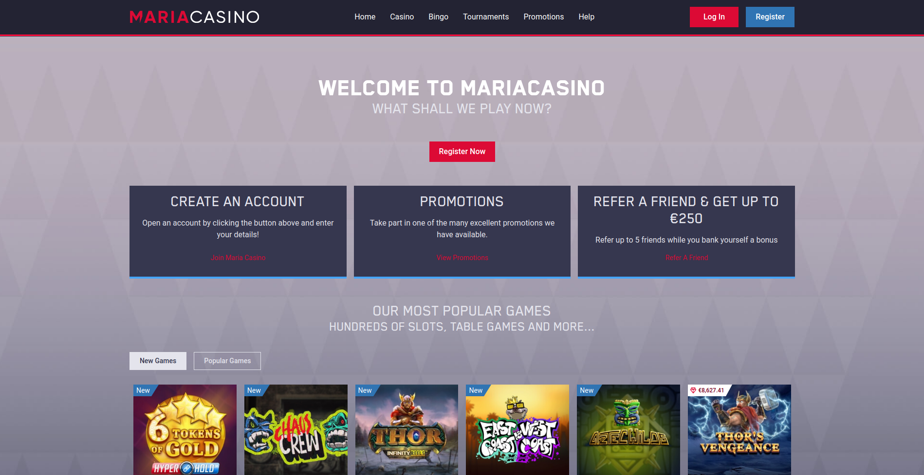 You will also find many other Maria Casino bonus offers and gifts, including Bongo's birthday prize drops, slot tournaments and more in the promotion section.
