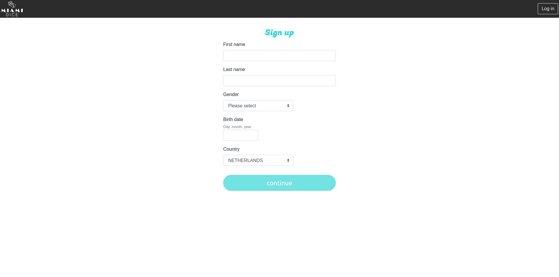 Miami Dice Casino: Registration
