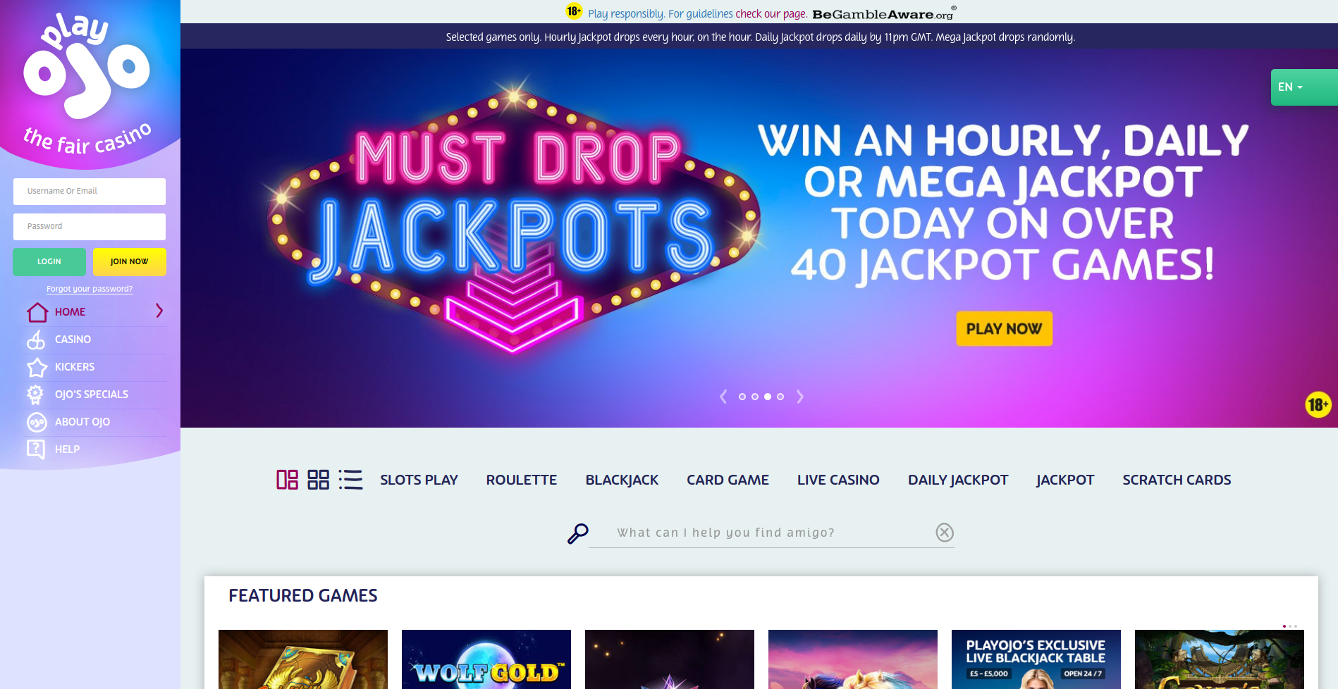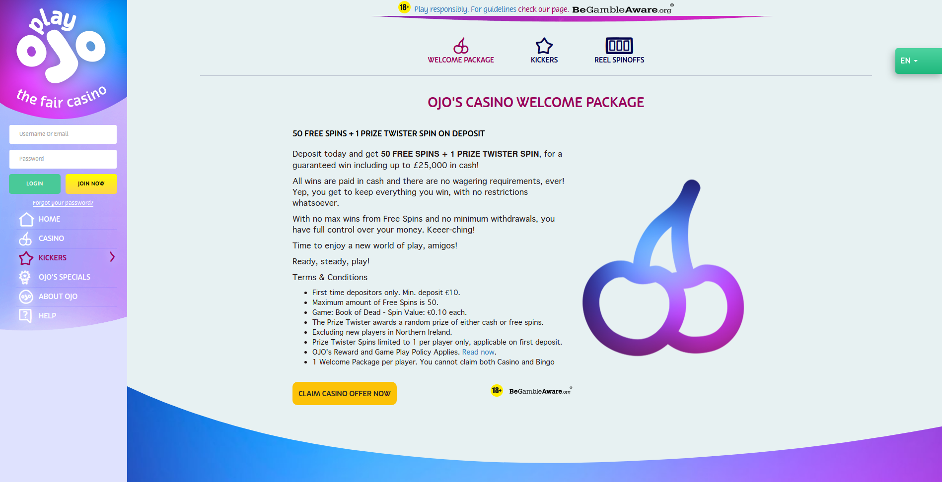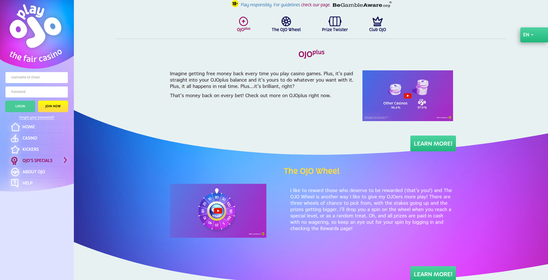 Another unique advantage of Playojo is the daily offers called Kickers, these offers can be found in your gaming account every day - to keep the entertainment going. However, these offers are only valid for one day. For many players, offers like this are a real advantage since it keeps the game going much longer. But Ojo is an extremely generous gaming casino because they also reward their players with various competitions, such as the Ojo wheel which every day offers random gifts like free spins and much more. As I said, PlayOjo is a fantastic casino site, however it lacks information about competitions against other players. It is very clear that the charm of the game page is mostly about the individual player, and that person’s journey through various adventures. But it might actually just be that they have not had time to create these yet, since they have focused on the kickers' tournaments instead. PlayOjo Online Casino is always there for you!