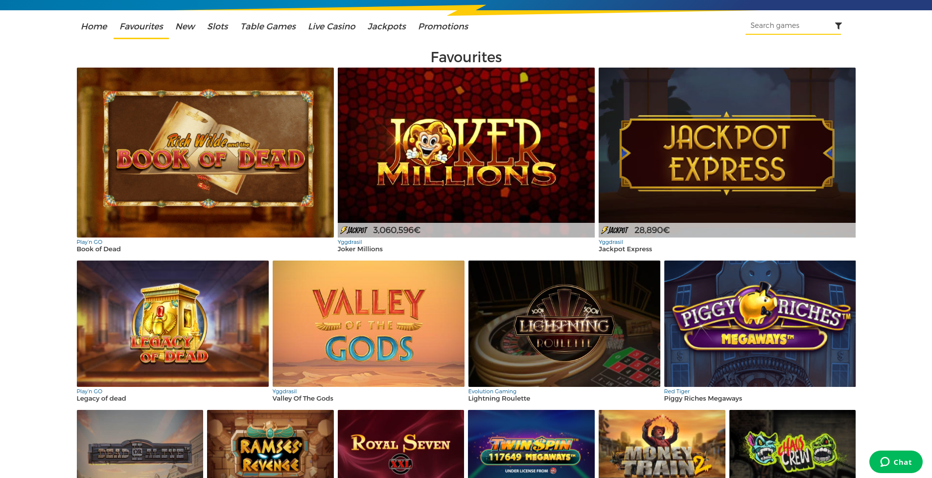 - Table games include favourites such as Roulette, Blackjack and Baccarat.