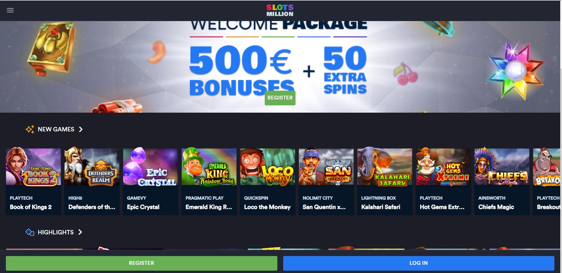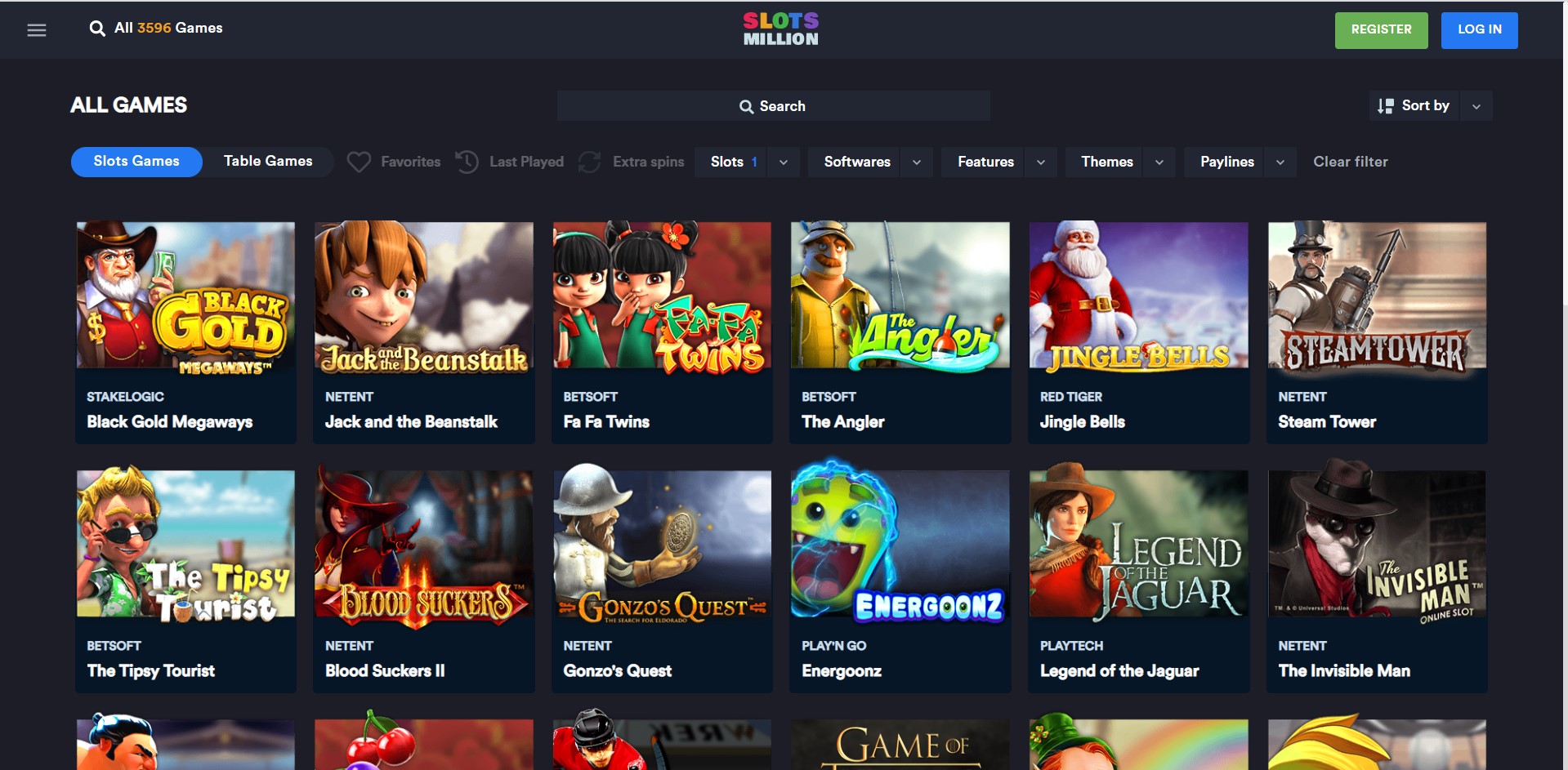 The name Slotsmillion proves that there are really loads of dames here. In fact, 2 800+ titles are waiting to be launched (or more, depends on the country). Their suppliers are Push Gaming, Red Rake, Yggdrasil, Wazdan and others. Games with jackpots also take place. Megaways slots have the separate section.