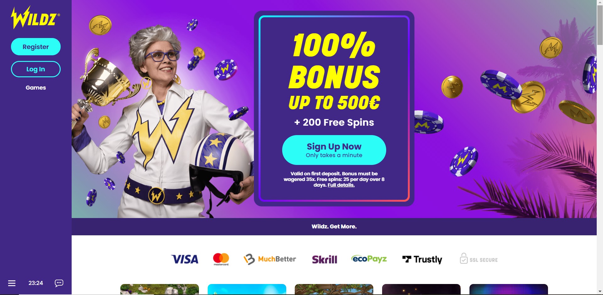 Wildz Casino offers you an incredible bonus to begin with. It is € 500 + 200 FS.