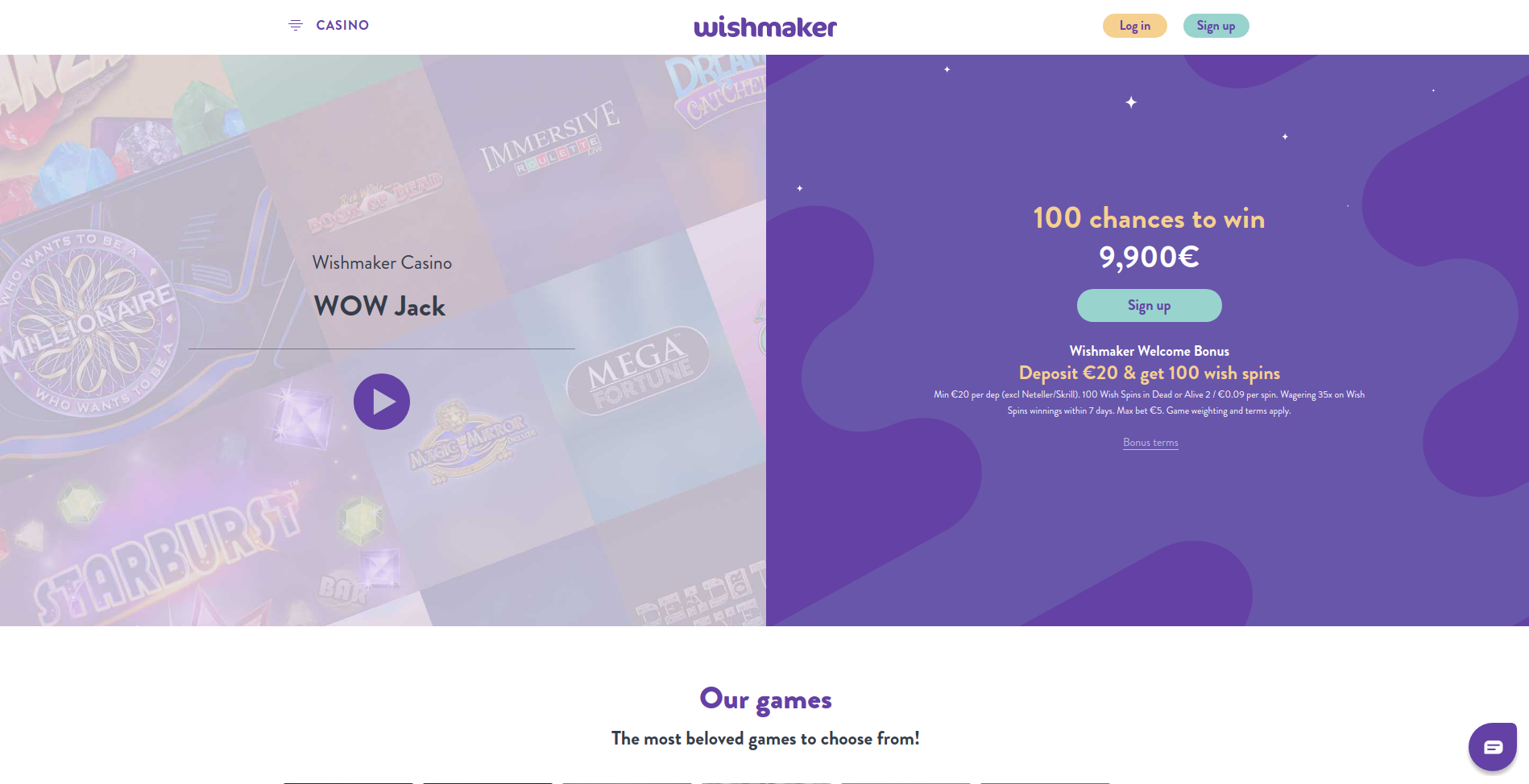 Wishmaker Casino: Large choice of games