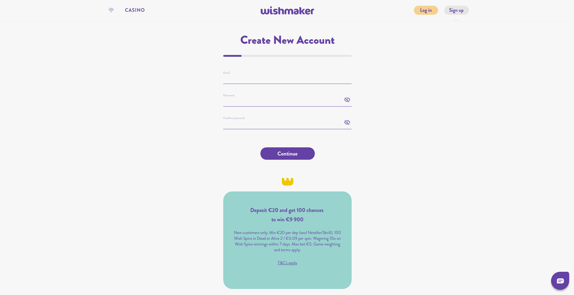 Registration at Wishmaker Casino